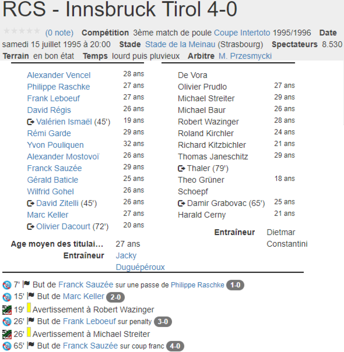 «Расинг Страсбург» Страсбург - «Инсбрук Тироль» Инсбрук - 4:0
