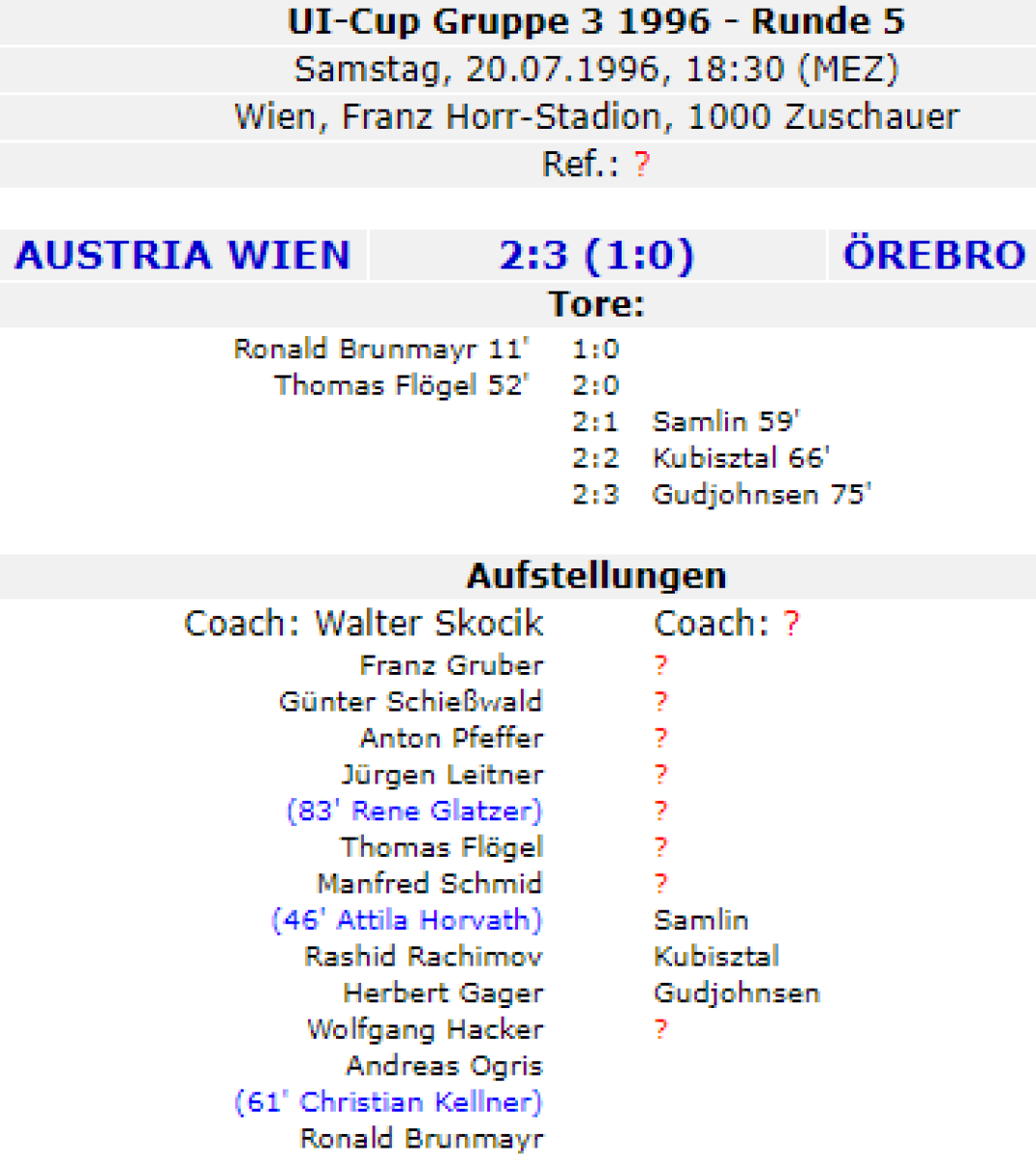 «Аустрия-Мемфис» Вена - «Эребру» Эребру - 2:3