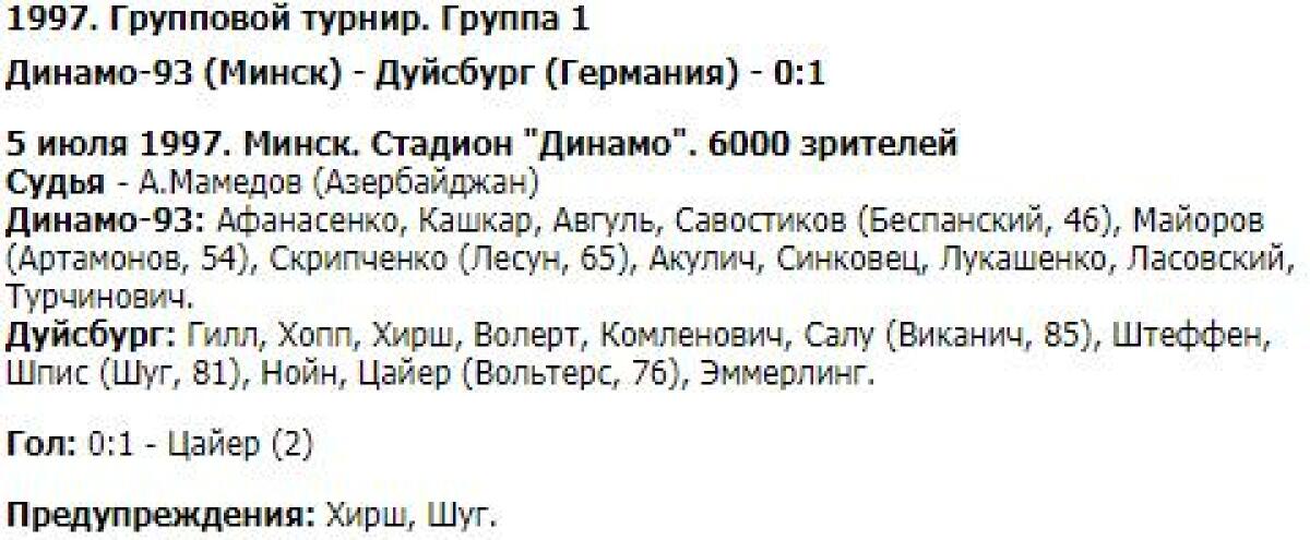 «Динамо-93» Минск - «Дуйсбург» Дуйсбург - 0:1