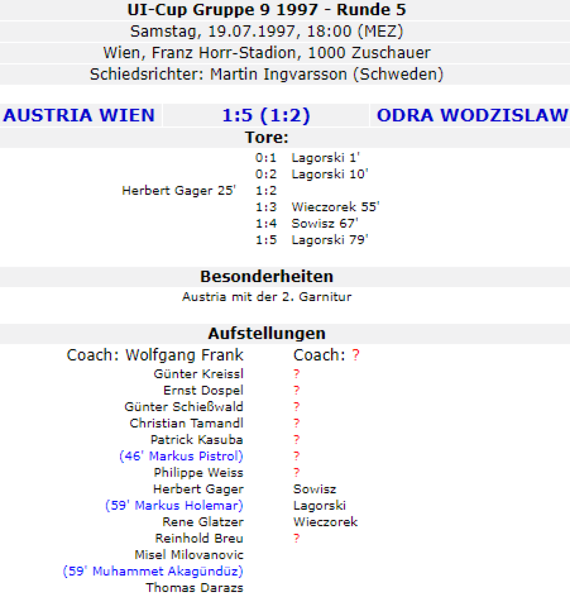 «Аустрия-Мемфис» Вена - «Одра» Водзислав-Слёнски - 1:5