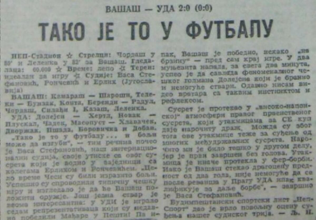 «Вашаш» Будапешт - ЦДА Прага - 2:0