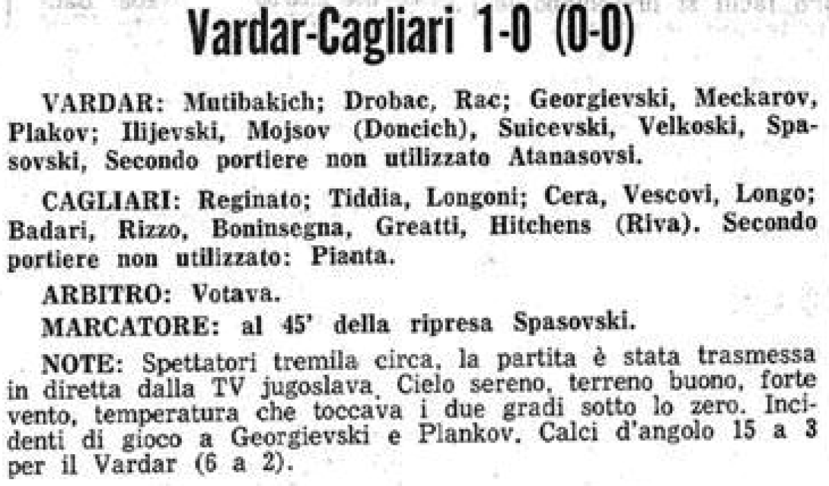 «Вардар» Скопье - «Кальяри» Кальяри - 1:0