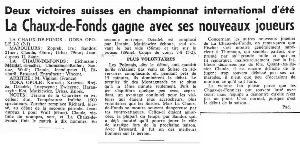 «Ла-Шо-де-Фон» Ла-Шо-де-Фон - «Одра» Ополе - 3:2