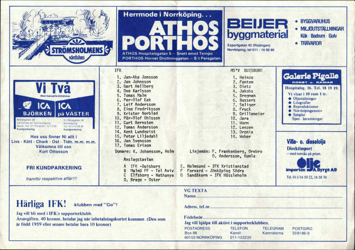 «ИФК Норрчёпинг» Норрчёпинг - «Дуйсбург» Дуйсбург - 1:2
