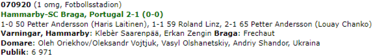 «Хаммарбю» Стокгольм - «Спортинг» Брага - 2:1