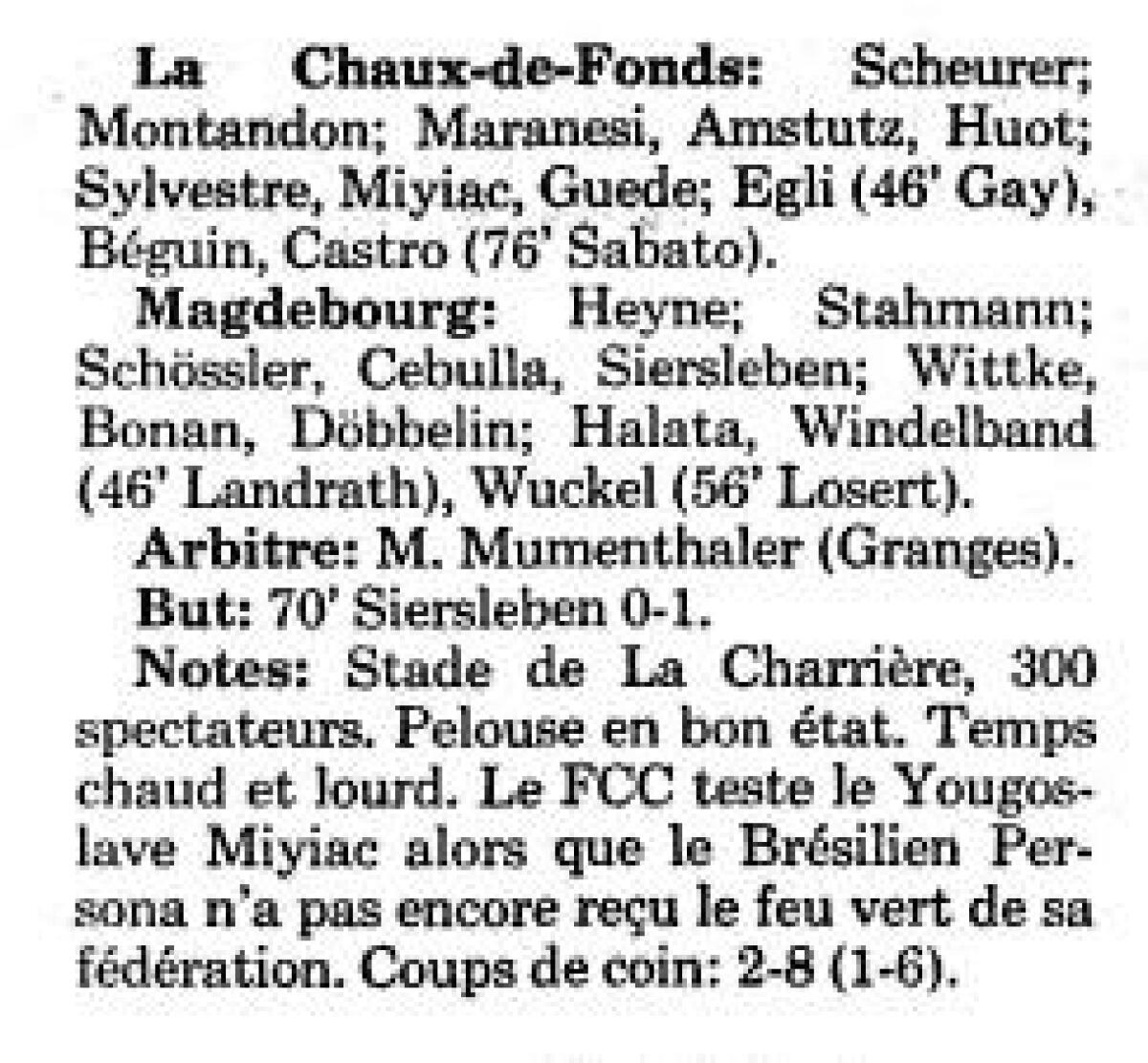 «Ла-Шо-де-Фон» Ла-Шо-де-Фон - «1. ФК Магдебург» Магдебург - 0:1