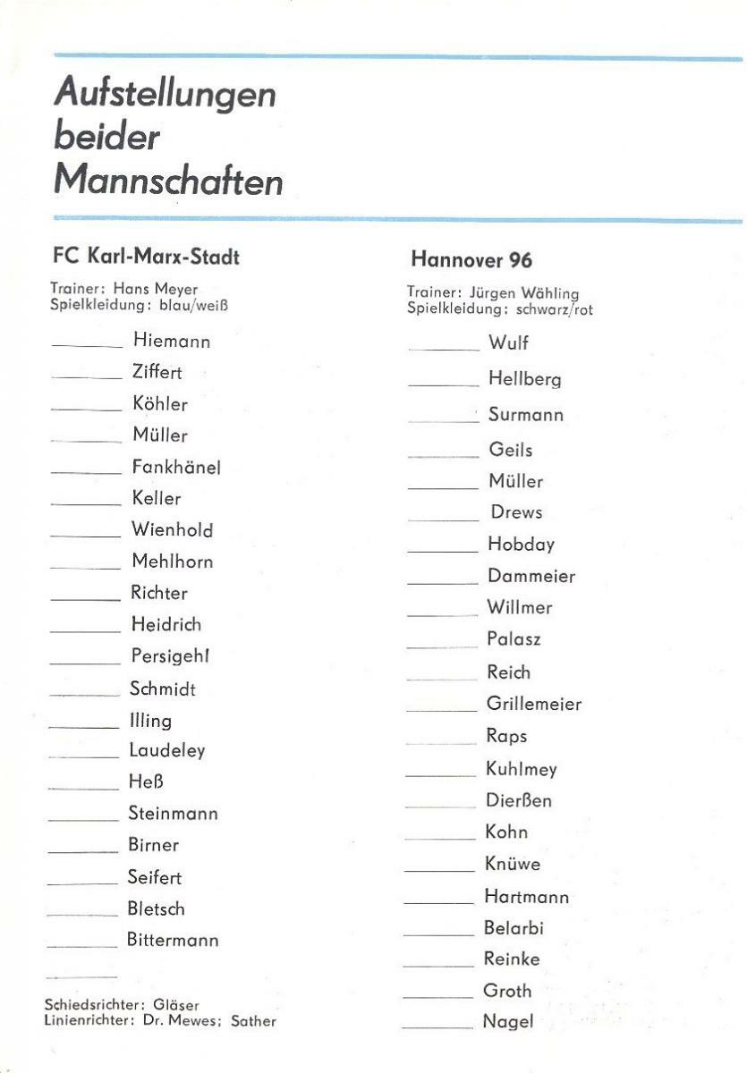 «Карл-Маркс-Штадт» Карл-Маркс-Штадт - «Ганновер-96» Ганновер - 1:0