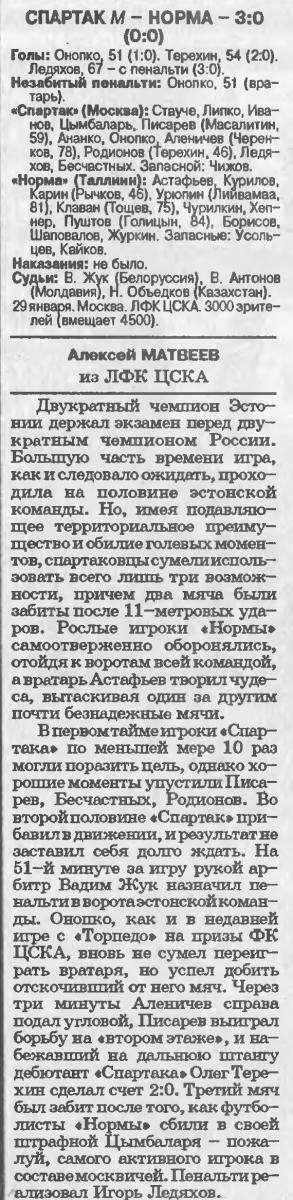«Спартак» Москва - «Норма» Таллин - 3:0