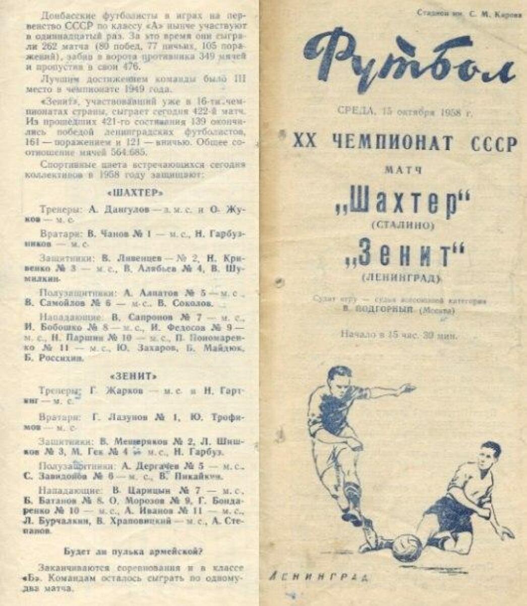 «Зенит» Ленинград - «Шахтёр» Сталино - 2:0