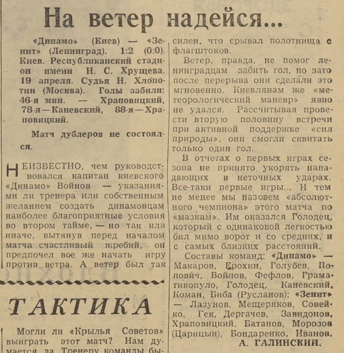 «Динамо» Киев - «Зенит» Ленинград - 1:2