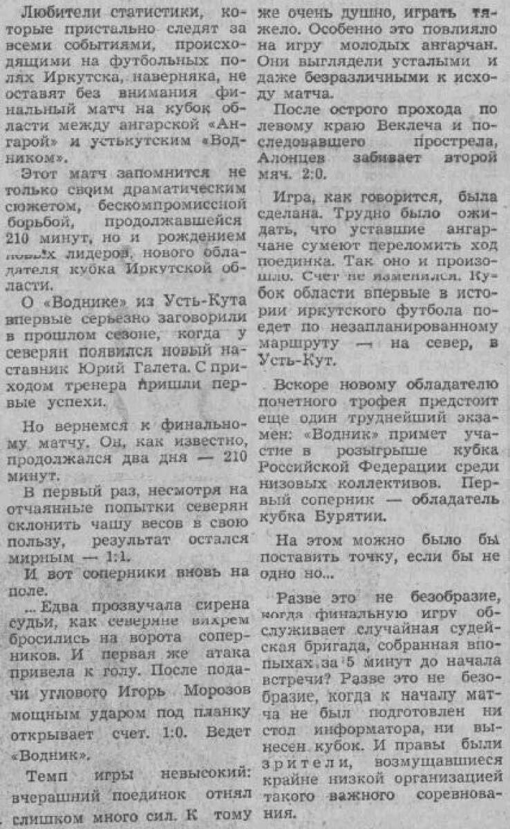 «Водник» Усть-Кут - «Ангара-клубная» Ангарск - 1:1