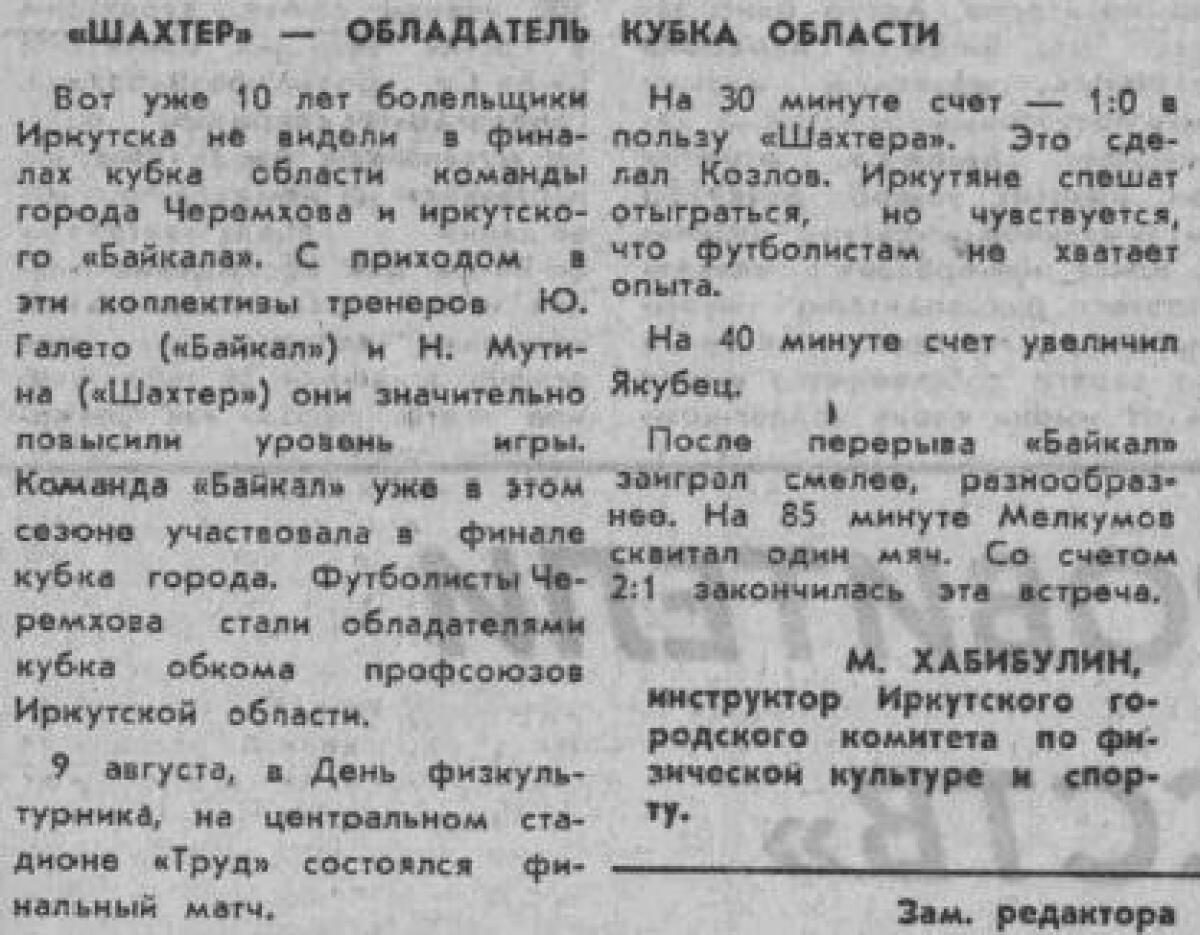 Кубок Иркутской области 1969