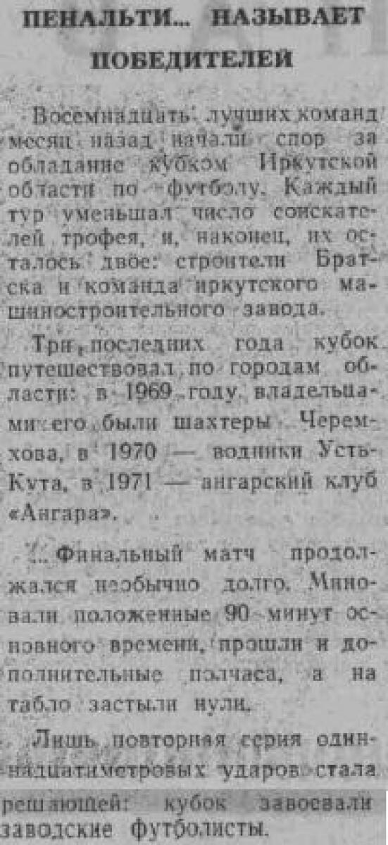 Кубок Иркутской области 1972