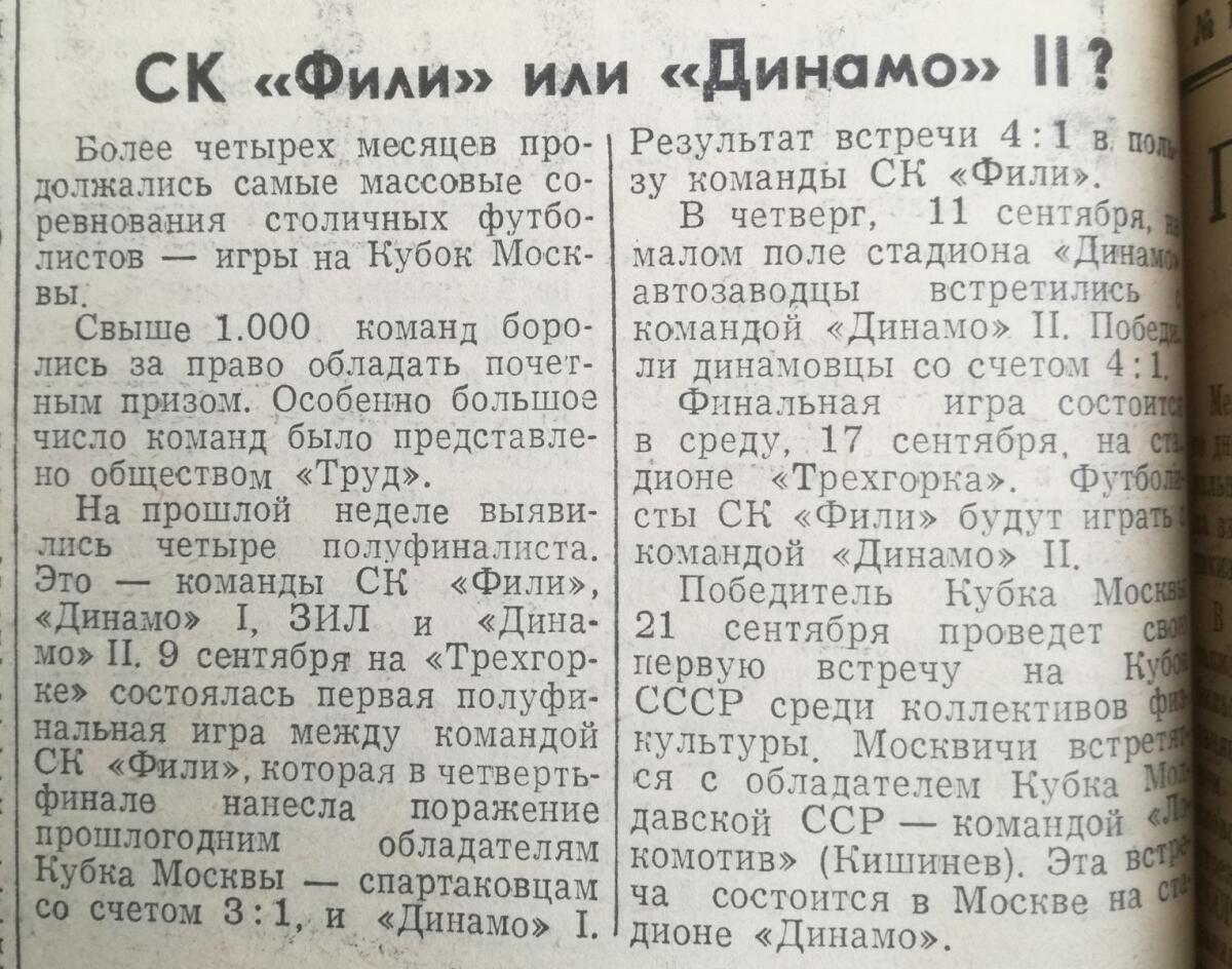 «Динамо» (19-й райсовет) Москва - «Фили» Москва - 3:0