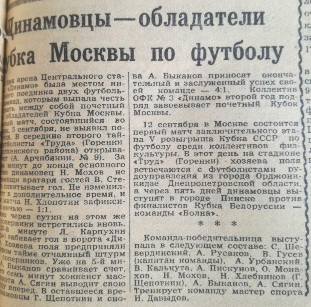 «Динамо» (3-й райсовет) Москва - «Труд» Горенки - 4:1
