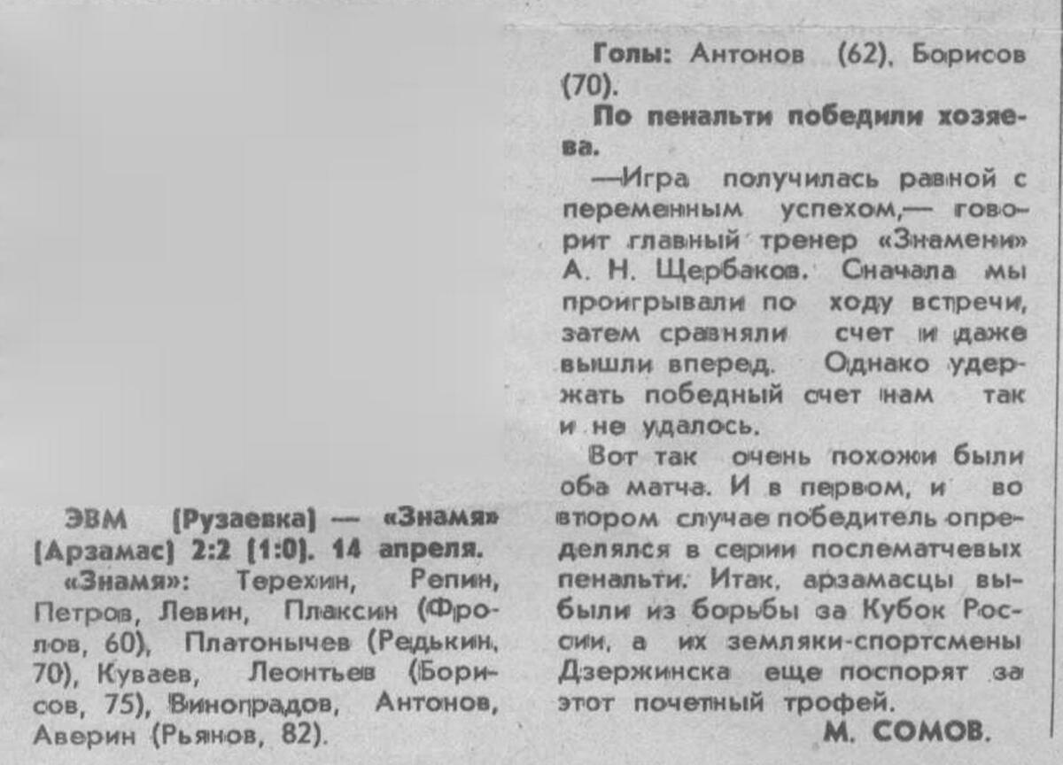 ЭВМ Рузаевка - «Знамя» Арзамас - 2:2