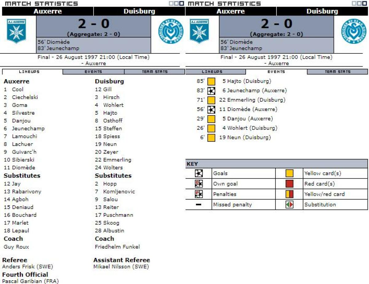 «Осер» Осер - «Дуйсбург» Дуйсбург - 2:0