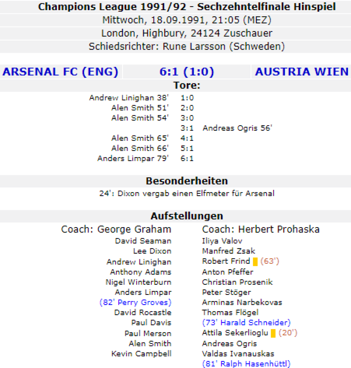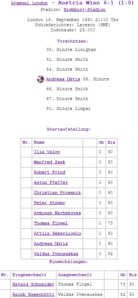 «Арсенал» Лондон - «Аустрия-Мемфис» Вена - 6:1