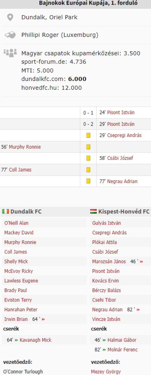 «Дандолк» Дандолк - «Кишпешт-Гонвед» Будапешт - 0:2