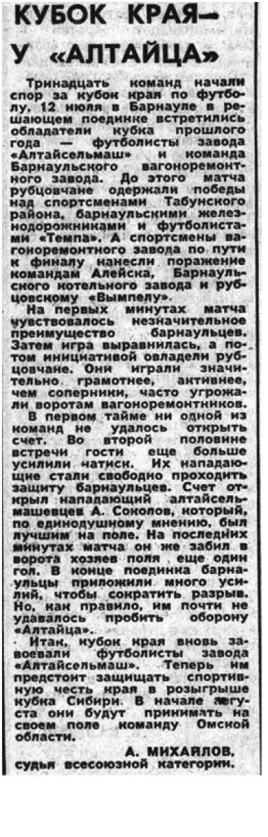 Кубок Алтайского края 1970