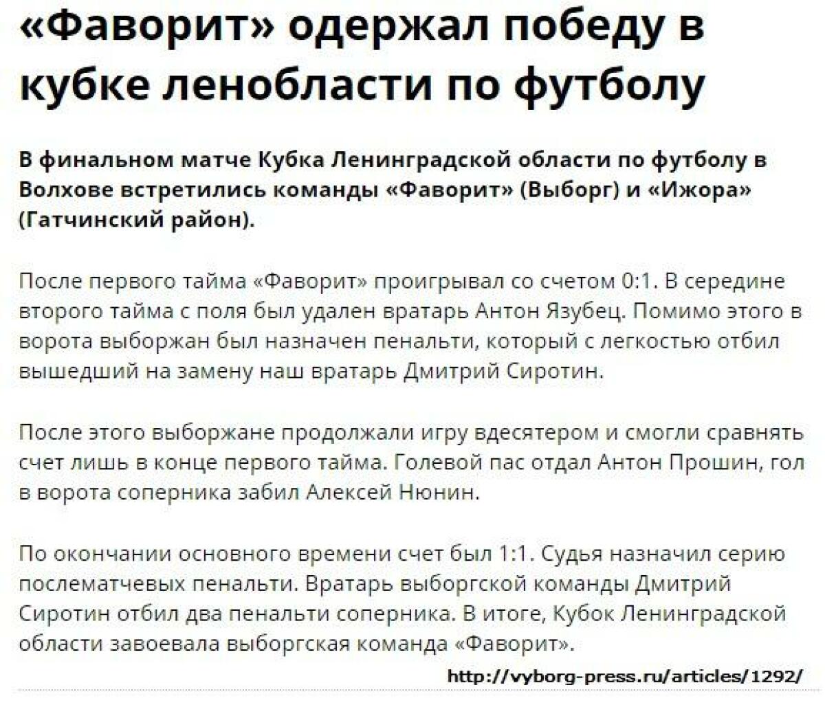 «Фаворит» Выборг - «Ижора» Ивановка - 1:1