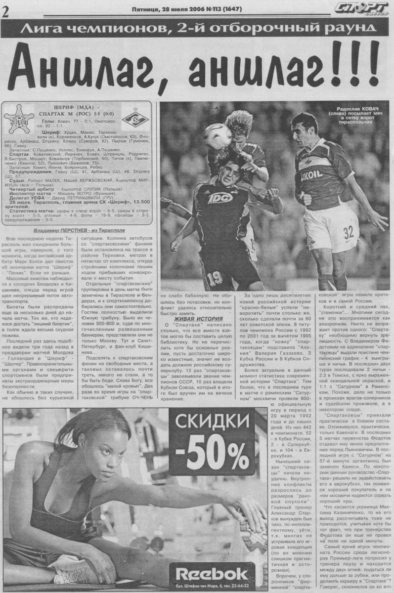 «Шериф» Тирасполь - «Спартак» Москва - 1:1