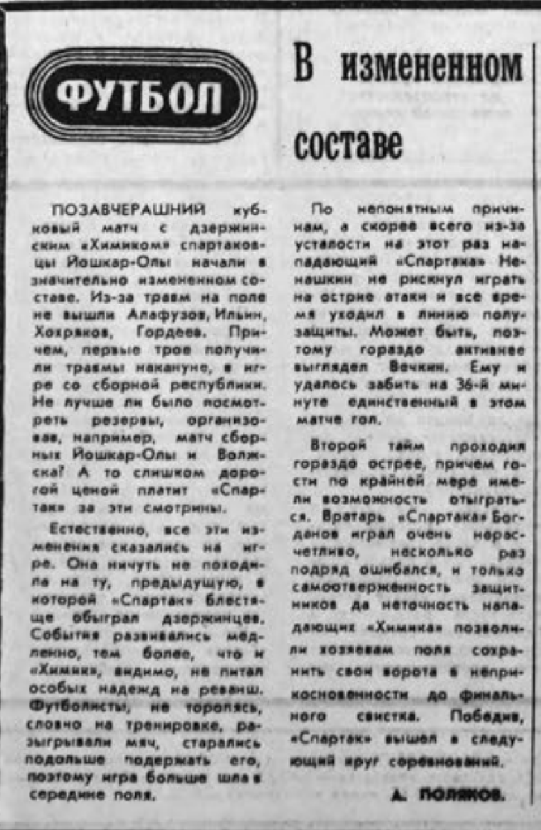 «Спартак» Йошкар-Ола - «Химик» Дзержинск - 1:0