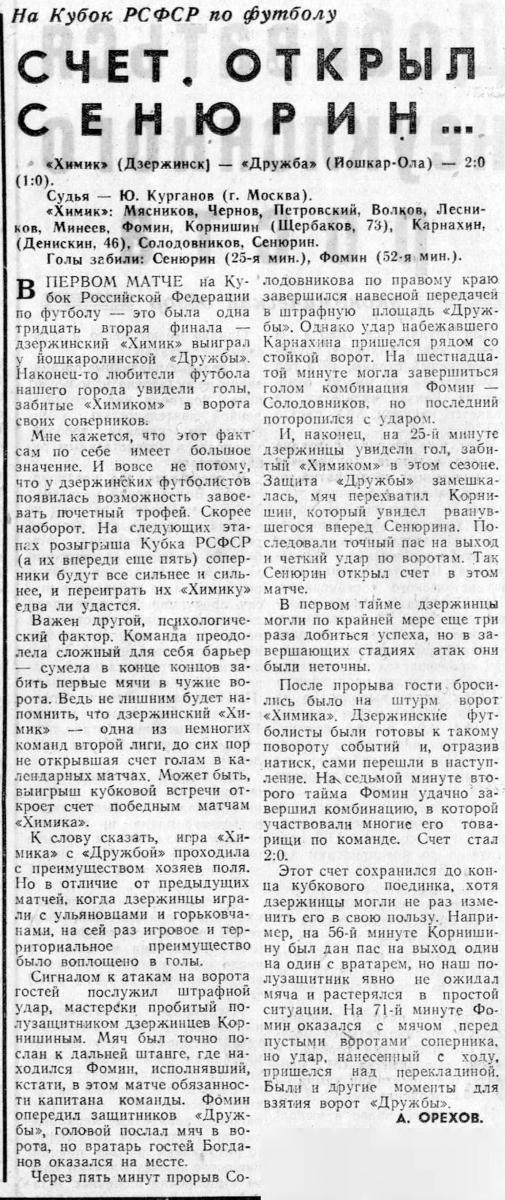 «Химик» Дзержинск - «Дружба» Йошкар-Ола - 2:0