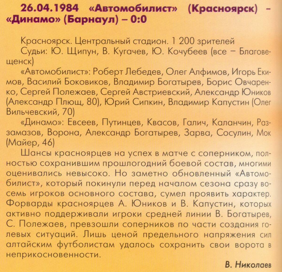«Автомобилист» Красноярск - «Динамо» Барнаул - 0:0