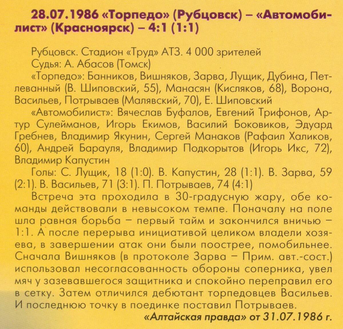 «Торпедо» Рубцовск - «Автомобилист» Красноярск - 4:1