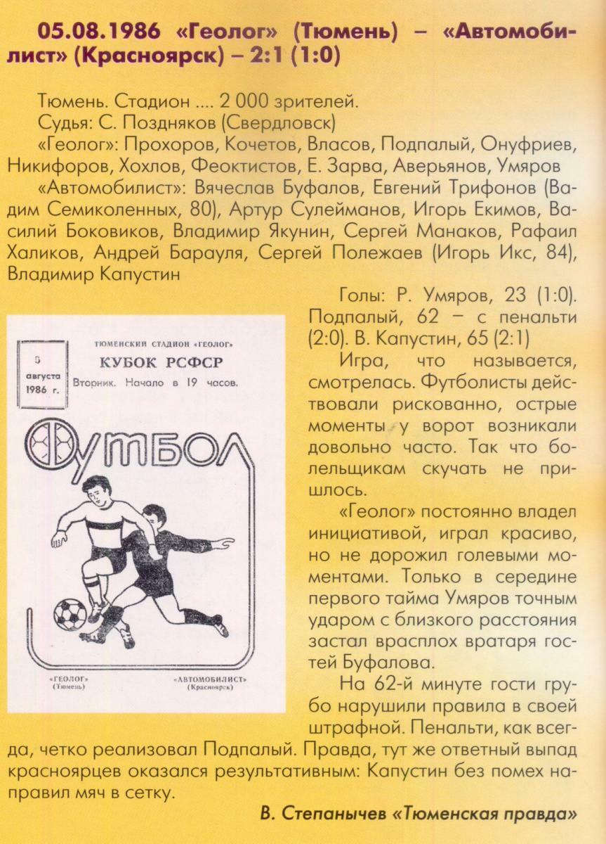 «Геолог» Тюмень - «Автомобилист» Красноярск - 2:1