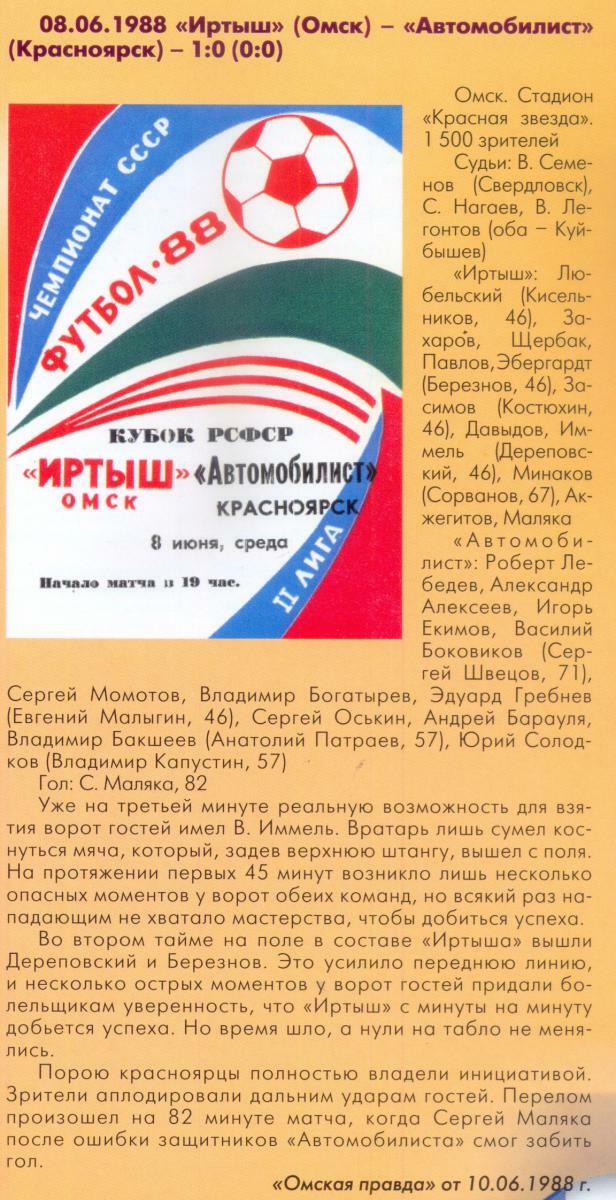 «Иртыш» Омск - «Автомобилист» Красноярск - 1:0