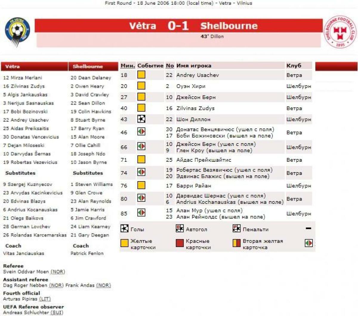 «Ветра» Вильнюс - «Шелбурн» Дублин - 0:1