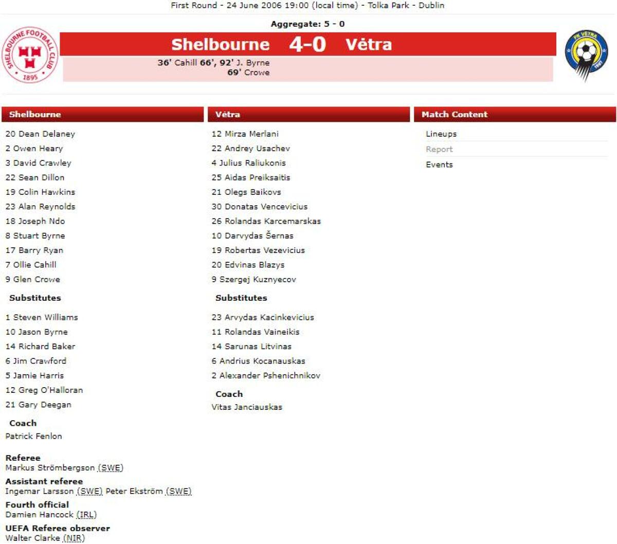 «Шелбурн» Дублин - «Ветра» - 4:0