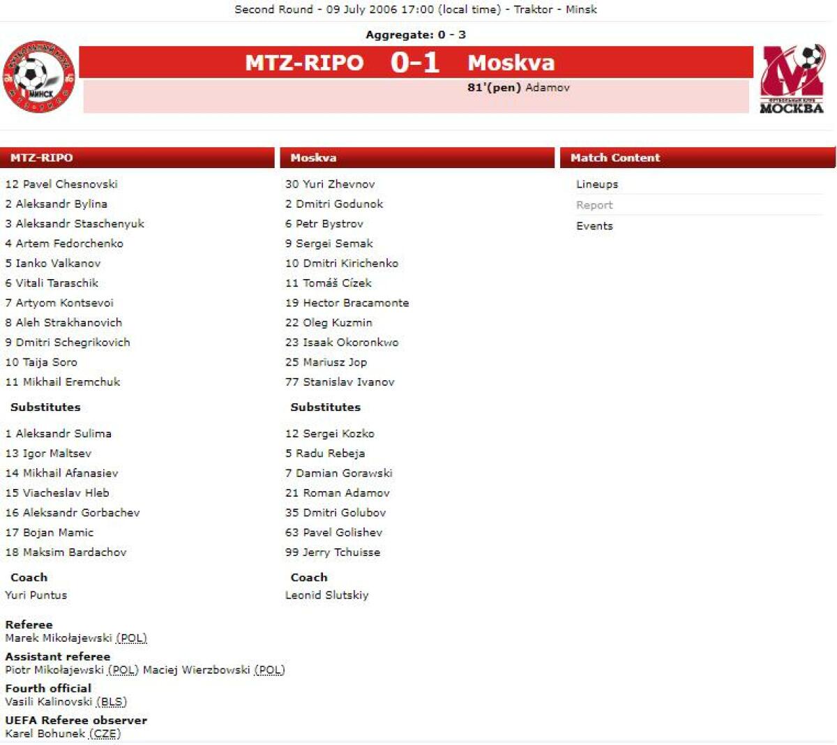 МТЗ-РИПО Минск - «Москва» Москва - 0:1