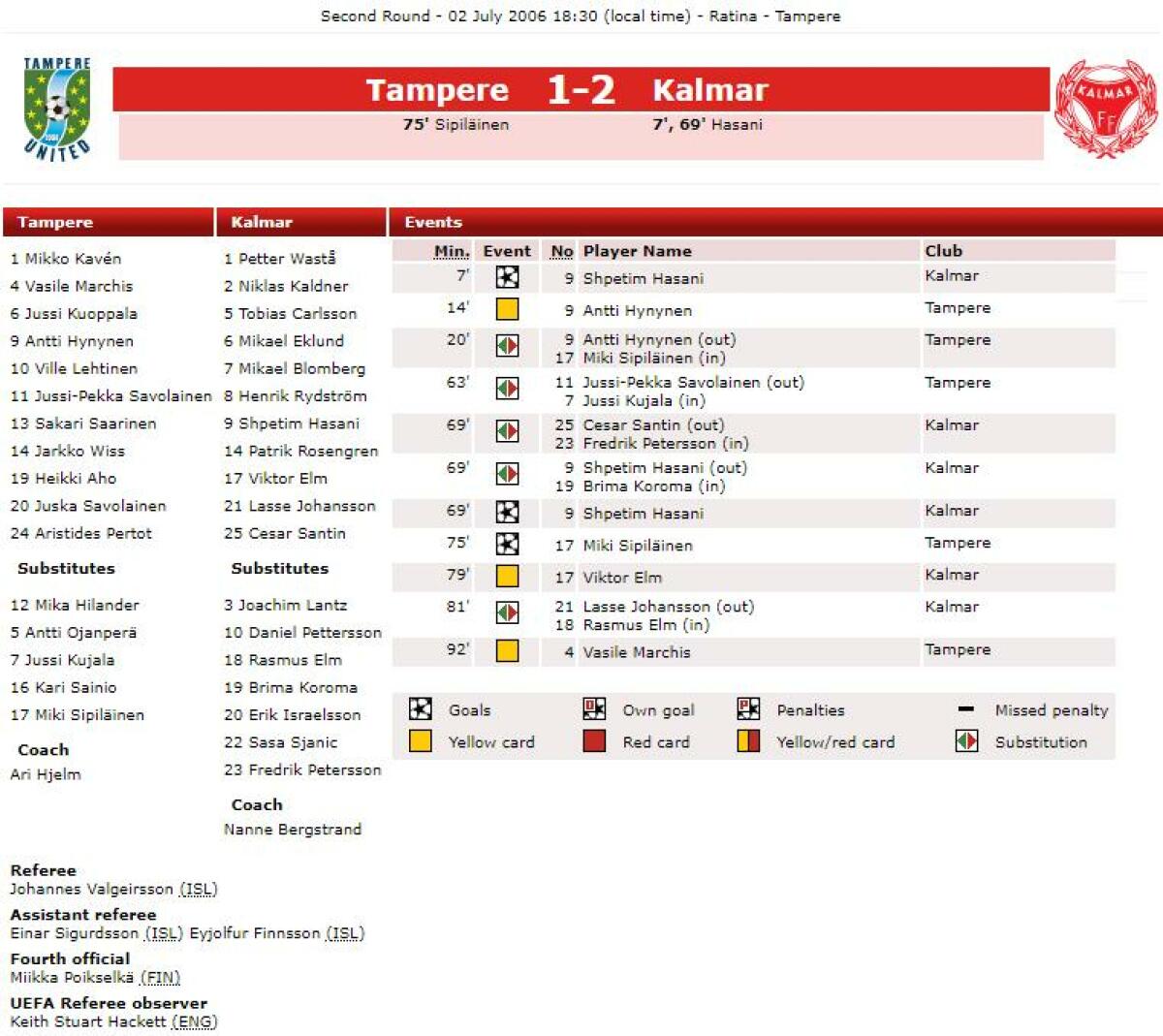 «Тампере Юнайтед» Тампере - «Кальмар ФФ» Кальмар - 1:2