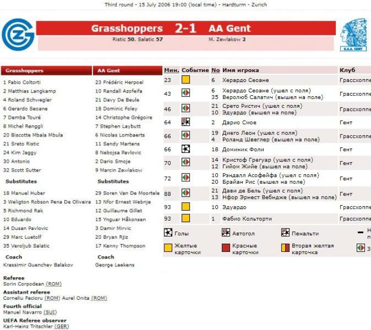 «Грассхоппер» Цюрих - «КАА Гент» Гент - 2:1