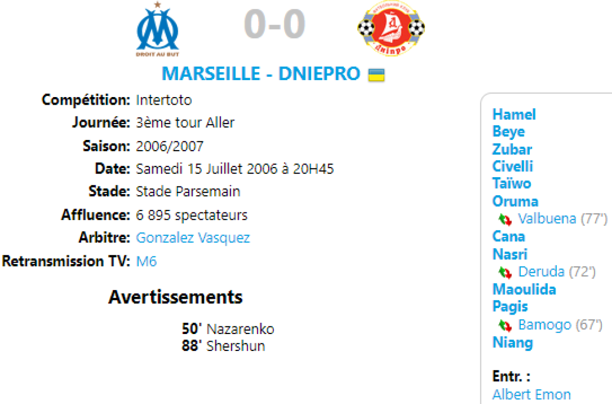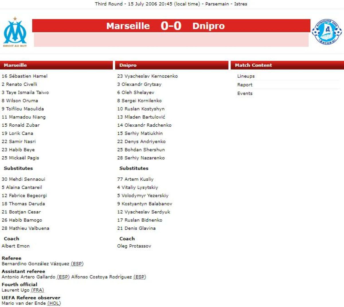 «Олимпик» Марсель - «Днепр» Днепропетровск - 0:0