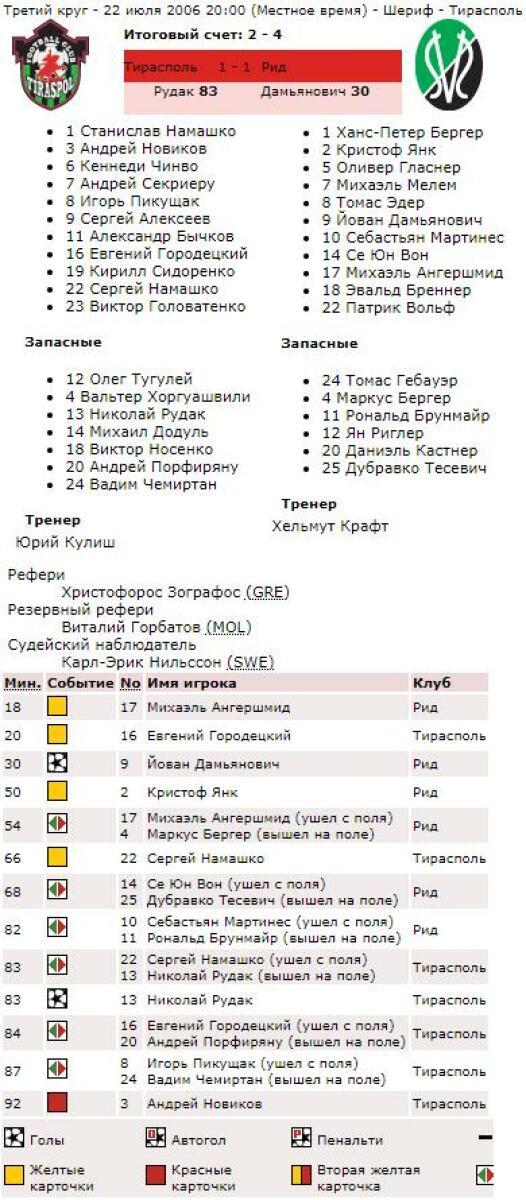 «Тирасполь» - «Рид» Рид-им-Иннкрайс - 1:1