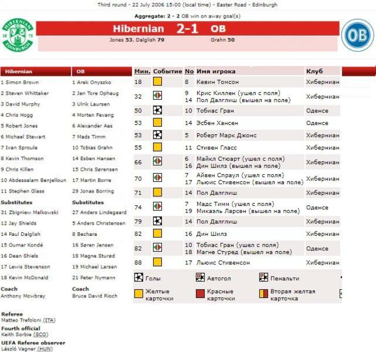«Хайберниан» Эдинбург - «Оденсе БК» Оденсе - 2:1