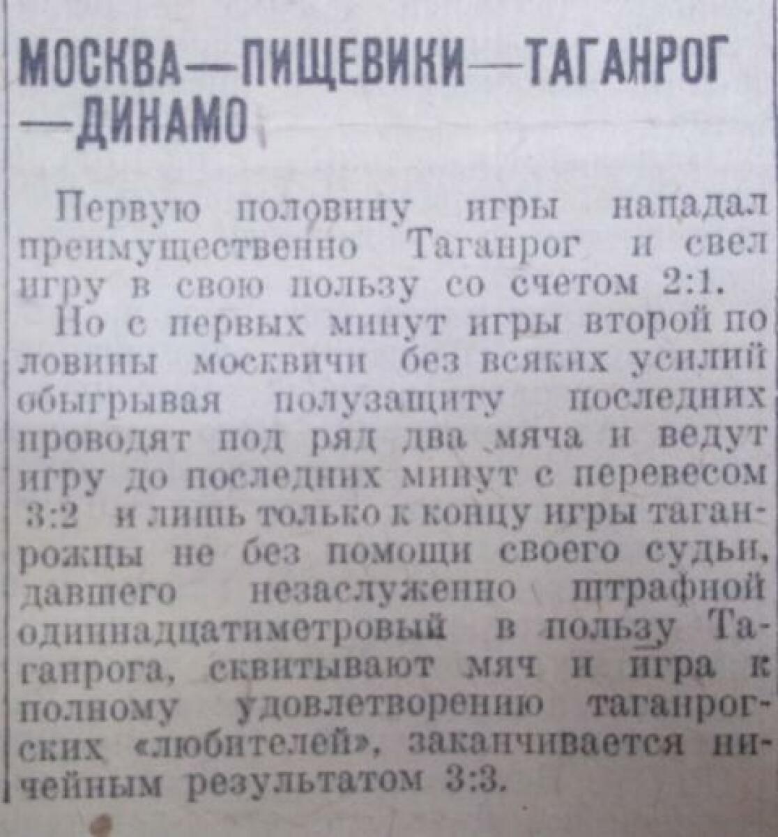 «Динамо» Таганрог - «Пищевики» Москва - 3:3