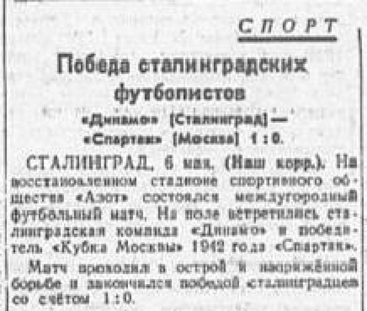 «Динамо» Сталинград - «Спартак» Москва - 1:0