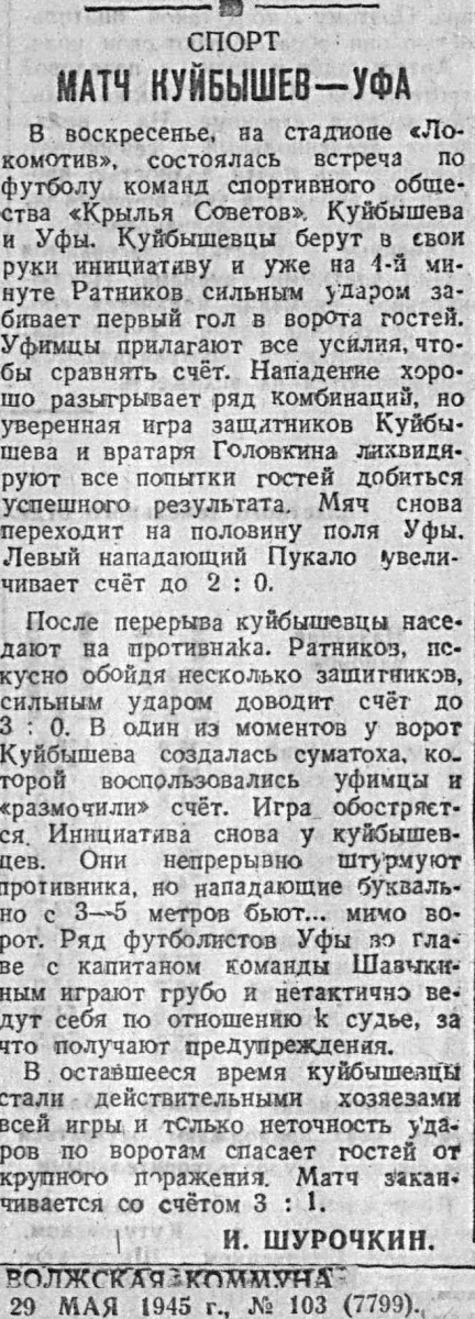 «Крылья Советов» Куйбышев - «Крылья Советов» Черниковск - 3:1