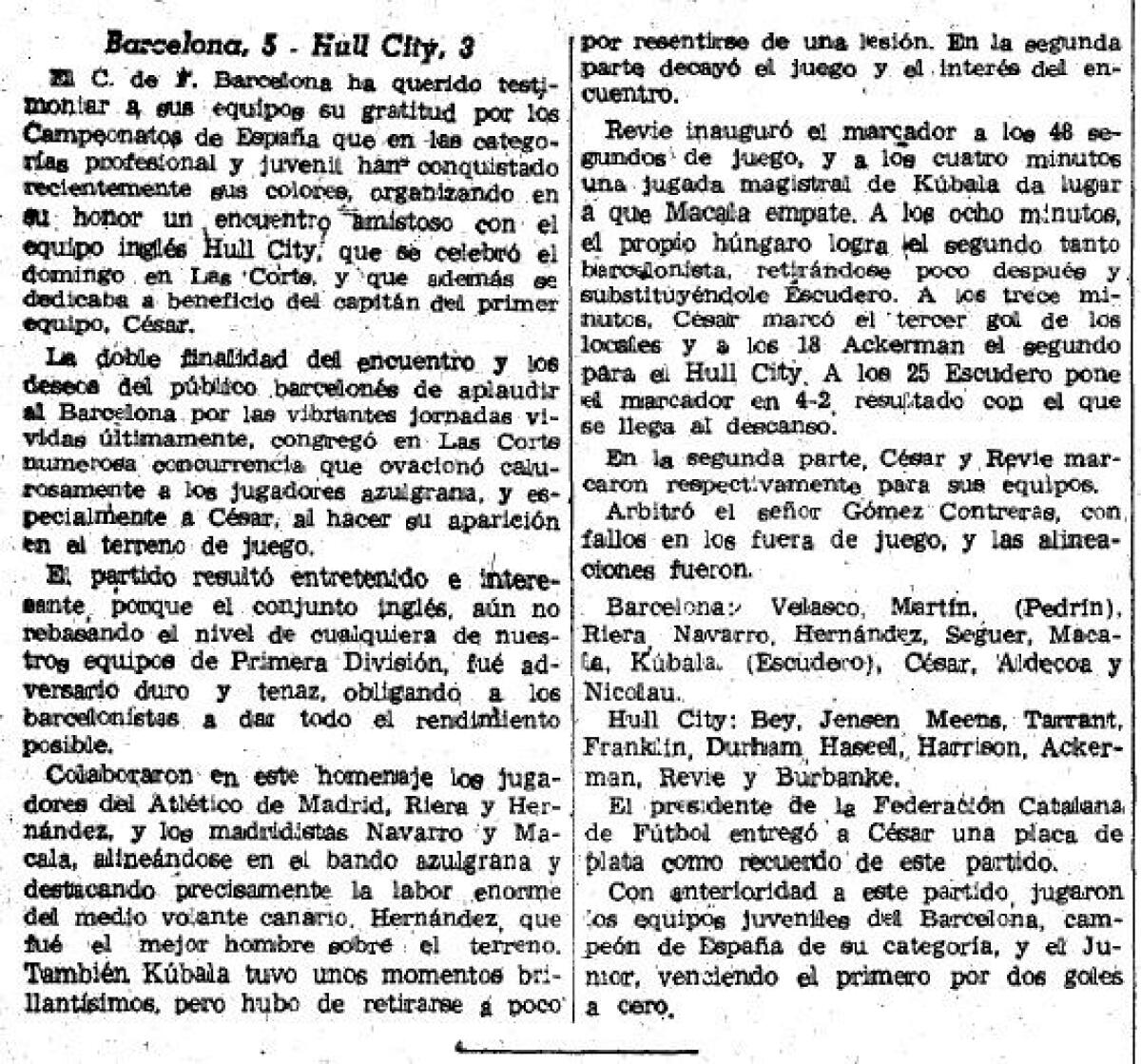 В матче с "Халл Сити" в составе "Барселоны" в виде усиления выступали Риера, Эрнандес (оба - "Атлетико" Мадрид) и Наварро, Макала (оба - "Реал" Мадрид).