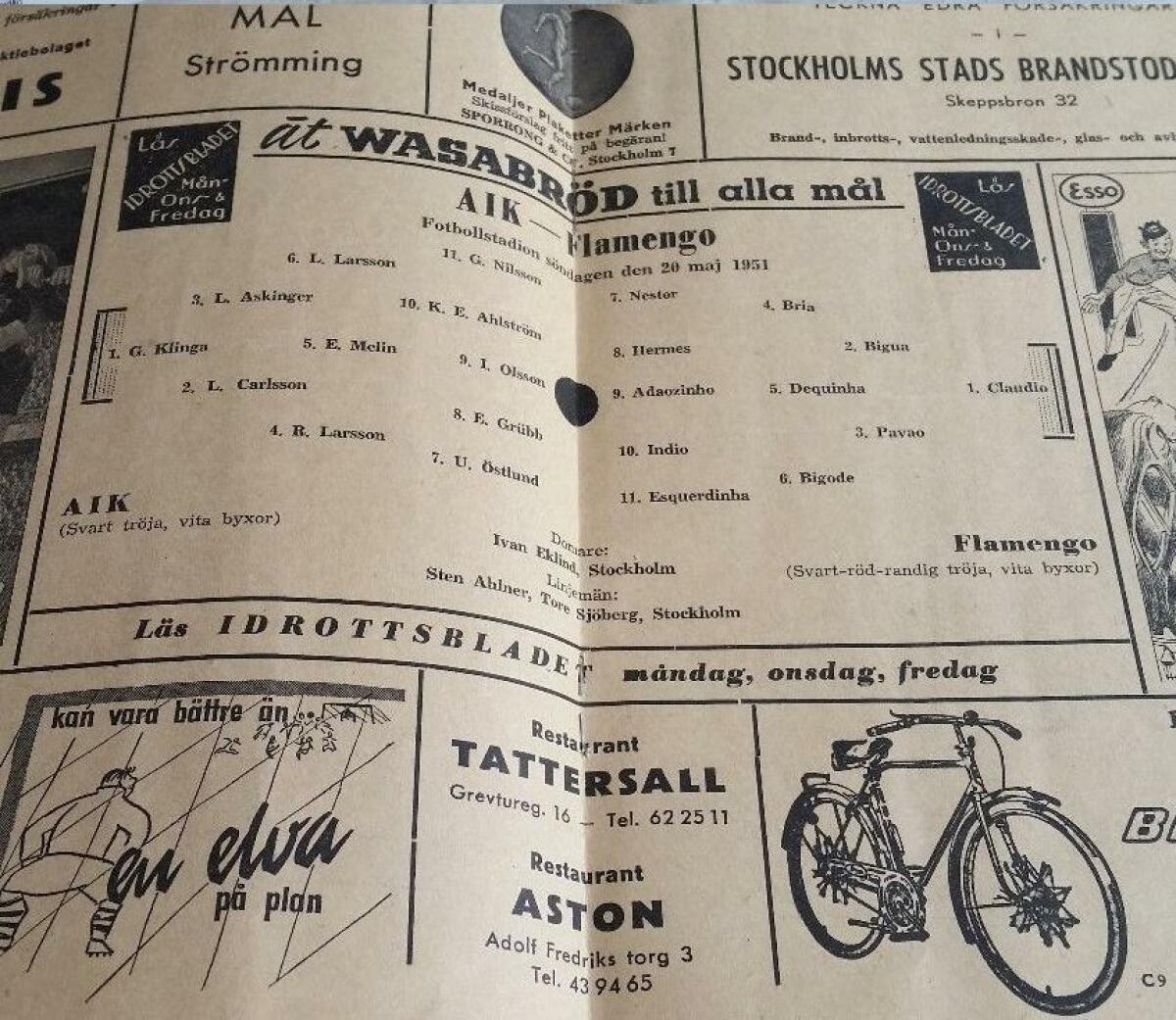 Матч в рамках турнира в честь 60-летия футбольного клуба АИК (14.05.1951 - 20.05.1951).
