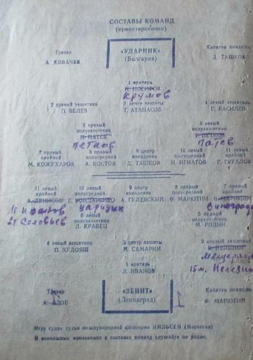 «Зенит» Ленинград - «Ударник» София - 1:1