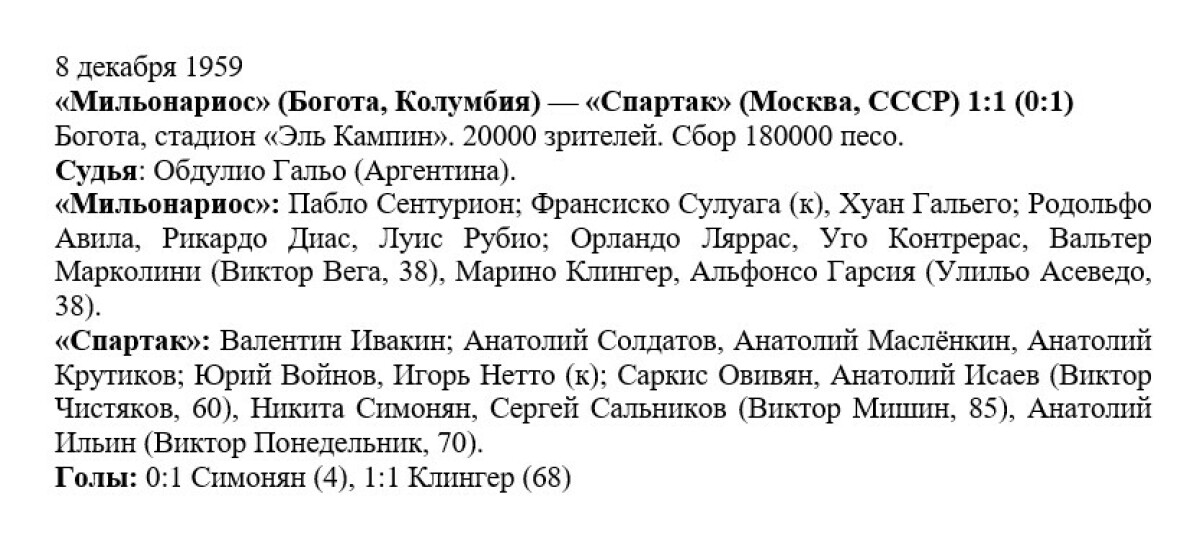 «Лос Мильонариос» Богота - «Спартак» Москва - 1:1