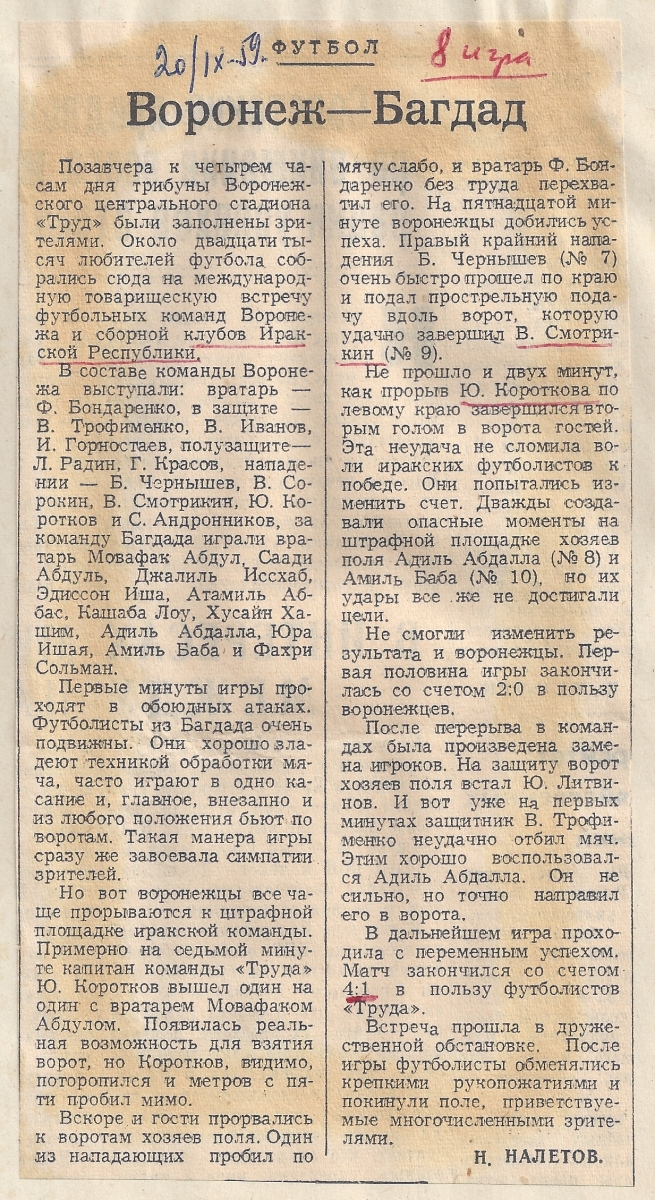 «Труд» Воронеж - Ирак - 4:1