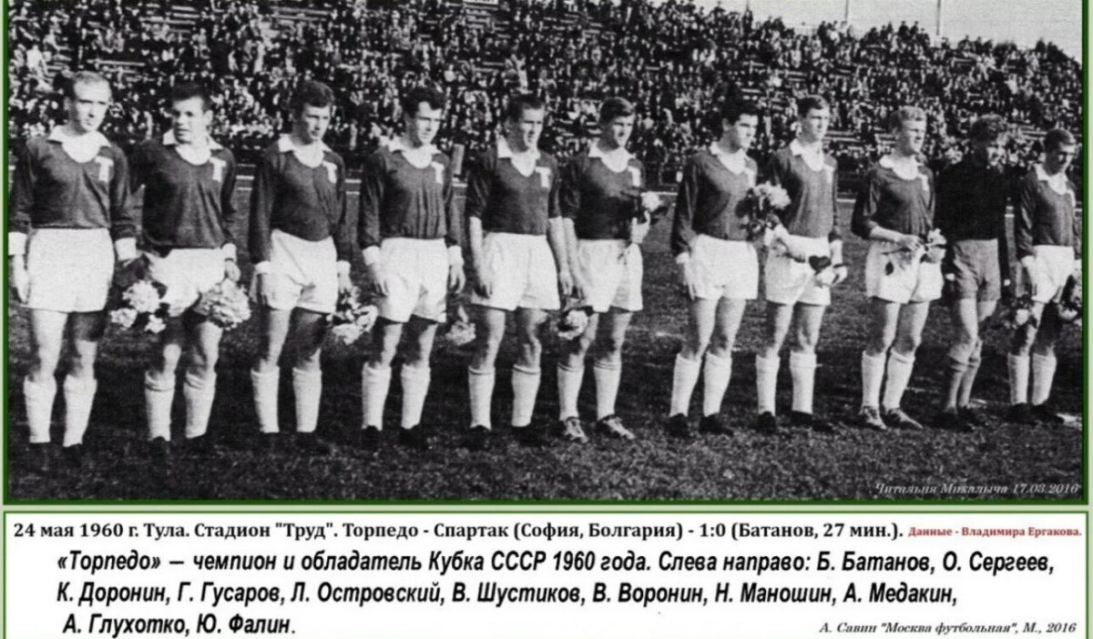 «Торпедо» — синие футболки, белые трусы, «Спартак» — бело-голубые футболки, красные трусы.