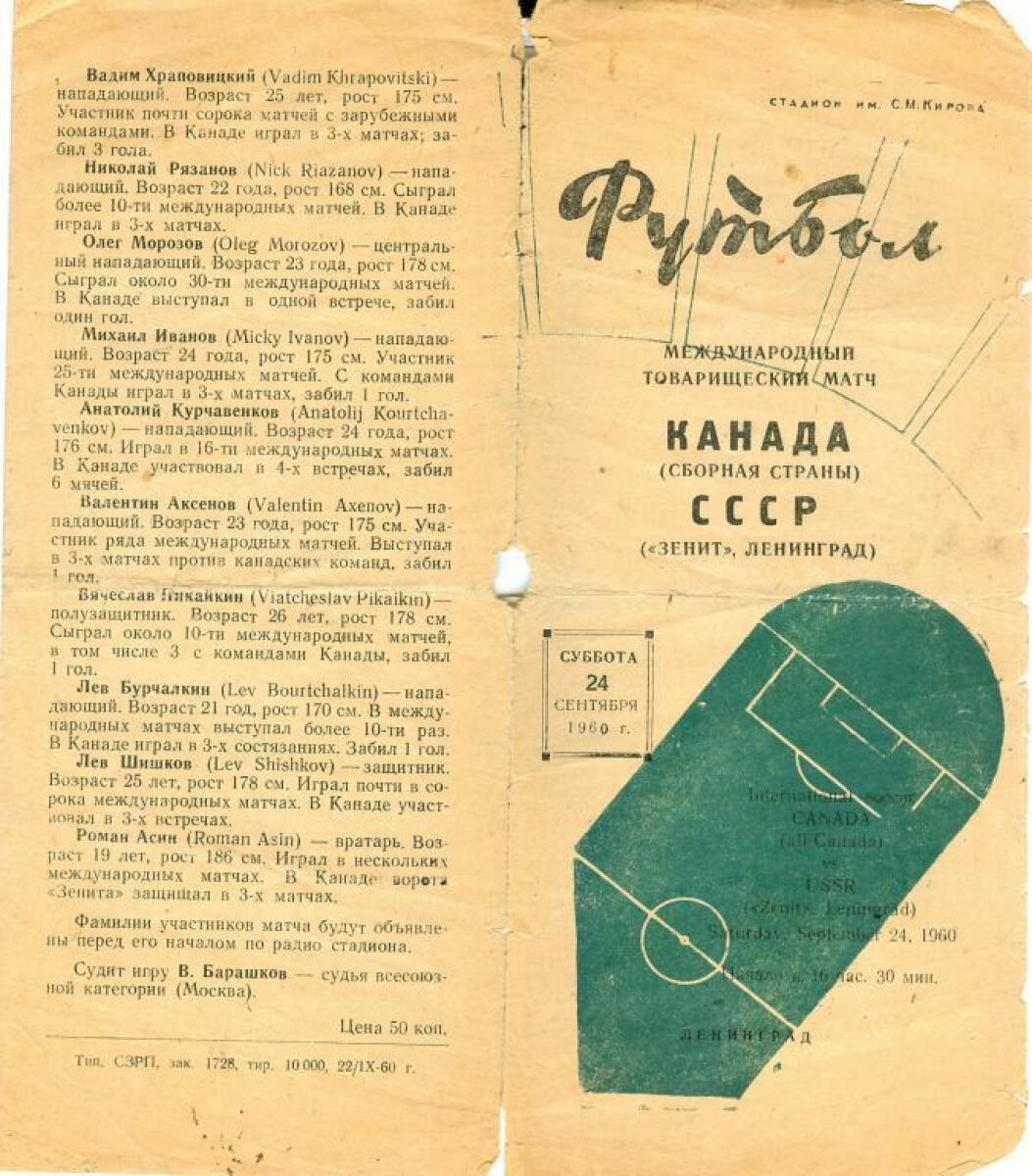 «Зенит» Ленинград - Британская Колумбия - 4:1